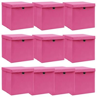 Opbergboxen met deksel 10 st 32x32x32 cm stof roze