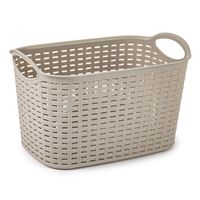 Plasticforte opbergmand / kastmandje. Ruim rondslingerend speelgoed, losse spulletjes of kleding gemakkelijk en netjes op met deze handige kast indeler mandjes. Handige mandjes geschikt voor in de kasten van slaapkamer, kinderkamer, zolder of garage. De manden hebben handige handgrepen en zijn gevlochten. Formaat: ca. 19 x 29 x 18 cm. Inhoud: 6,4 liter. Materiaal: kunststof. Stapelbaar/nestbaar. Merk: Plasticforte.
