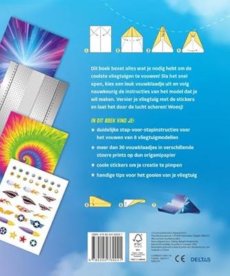 Papieren vliegtuigjes - stap voor stap Dit leuke boek van Deltas bevat alles wat je nodig hebt om de coolste vliegtuigen te vouwen!Er zitten meer dan 30 vouwblaadjes in stoere prints bij zodat je meteen aan de slag kunt gaan. Kies een model uit, haal een vouwblaadje uit het boek en volg nauwkeurig de instructies van het model dat je hebt gekozen. Bovendien zitten er in het boek ook leuke stickers om je vliegtuig mee te versieren. Vouwen en vliegen maar!In dit boek vind je:- duidelijke stap-voor-stapinstructies voor het vouwen van 8 vliegtuigmodellen- meer dan 30 vouwblaadjes in verschillende stoere prints op dun origamipapier- coole stickers om je creatie te pimpen- handige tips voor het gooien van je vliegtuig