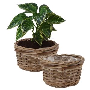 Plantenmand/aardappelmand tafelmodel - 2x - Ivy - met binnenzak - rotan - B25 x H13 cm - binnen/buit