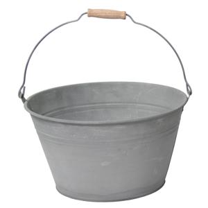 1x plantenpot/bloempot/emmer gemaakt van zink met houten handvat in de kleur grijs. Lage emmer leuk ter decoratie als plantenpot/bloempot maar kan ook gebruikt worden tijdens het tuinieren. Afmetingen: Diameter 27 cm en Hoogte 15 cm. Let op: zink is niet 100% gegarandeerd waterdicht. Plaats eventueel een schotel/bordje onder de emmer om lekken te voorkomen.