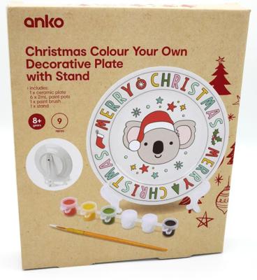 . Schilder je eigen ontbijtbordje voor de kerst. inclusief verf opzethouder voor bord en penseel. 17 cm doorsnee. met opdruk van koala beertje met kerstmuts.