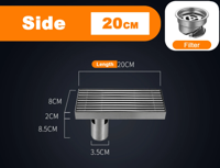 ProDrain Vierkante RVS Douchegoot - 20-50cm Anti-geur Vloerput met DeodorisatieBreng je badkamer naar een hoger niveau met de ProDrain™ Vierkante RVS Douchegoot - de perfecte mix van design, functionaliteit en hygiëne. Deze vloerdrain is vervaardigd uit hoogwaardig 304 roestvrij staal, met een strak geborsteld oppervlak dat zowel stijlvol als duurzaam is. Dankzij het anti-geur deodorisatiesysteem voorkomt deze douchegoot onaangename geuren in de badkamer of douche.✅ Waarom kiezen voor ProDrain?🌬 Anti-geur ontwerp - effectief tegen rioollucht dankzij deodoriserende technologie.💧 Krachtige waterafvoer - voorkomt waterophoping tijdens douchen.🛠 Eenvoudig zelf te installeren - DIY-ontwerp geschikt voor renovatie of nieuwbouw.🧼 Roestvrij en hygiënisch - gemaakt van 304 RVS, eenvoudig schoon te maken.🔳 Strak vierkant design - modern, tijdloos en past in elk badkamerinterieur.📏 Verkrijgbaar in meerdere lengtes (20-50 cm) - voor elk formaat doucheruimte.📐 SpecificatiesProductnaam: ProDr…