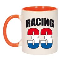 Racing 33 vlag mok / beker oranje wit 300 ml - coureur supporter / race fan beker