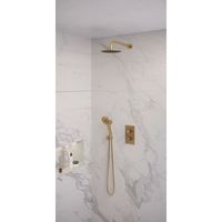 Regendoucheset Inbouw Brauer Gold Edition Thermostatisch 20 cm met 3-Weg Omstelling, Gebogen Wandarm, Glijstang en Handdouche 3-Standen Geborsteld