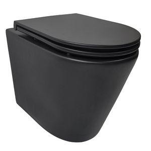Rimless Wandcloset BWS Astev Flush Mat Zwart Met Flatline Toiletzitting Softclose En Quick Release Mat Zwart