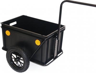 Roland Mini Boy Fietskar 12 Inch Unisex ZwartRoland Mini Boy fietskarDe Roland Mini Boy Bagagekar is een praktische, degelijke fietskar die ideaal is voor het vervoeren van bijvoorbeeld de boodschappen of je hond. De Mini Boy kan makkelijk worden bevestigd aan de zadelpen en heeft een draagvermogen van 50 kg.De kar wordt geleverd inclusief materiaal voor bevestiging van de dissel bij het zadel. Deze koppeling is continue aan de fiets bevestigd; het aan- en loskoppelen is een fluitje van een cent. Het frame is gemaakt van staal en de bak zelf bestaat uit slagvast kunststof.Specificaties:Kleur: zwartWielmaat: 12 inchMakkelijk te monteren op de zadelpenVoorzien van zijreflectorenEigen gewicht: 10 kgBuitenmaat: 60 x 40 x 32,5 cmBinnenmaat: 56 x 36 x 32 cmInhoud bak: 60 literMaximale laadvermogen: 50 kgLet op: De kar wordt geleverd zonder deksel, deze is apart verkrijgbaar.185,-