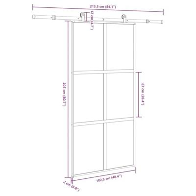 Schuifdeur met beslag 102,5x205 cm gehard glas en aluminium