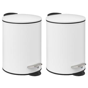 5Five Pedaalemmer - 2x - wit - metaal - 3L - 23 cm - soft close
