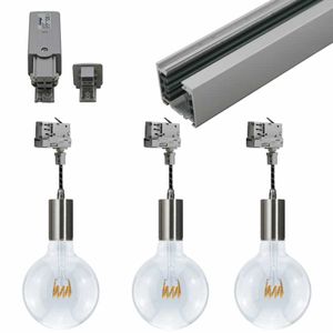 Spanningsrail zilver 2 meter met 3x filament lamp met aluminium fitting E27