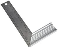 Winkelhaak met maatverdeling Kenmerken en voordelen * Winkelhaak * Fotografisch geëtste mm-verdeling op roestvrij staal, duidelijk zichtbaar * Geribde aluminium balk met 3 klinknagels bevestigd aan winkelhaak voor stevigheid en nauwkeurigheid * Balk is afgekant om hoeken van 90° en 45° te maken * Mm-verdeling aan beide zijden