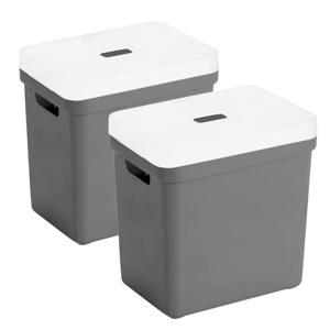Sunware opbergbox met deksel - 2x - Sigma Home - kunststof - 25 liter - antraciet - opberg dozen