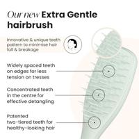 Dit is onze eerste haarborstel die specifiek is ontwikkeld voor een haarprobleem, en hij is ontworpen om haaruitval en haarbreuk tot een minimum te beperken - ongeacht je haartype. Met onze expertise hebben we een haarborstel gecreëerd met een uniek en innovatief tandpatroon dat zorgt voor minder breuk, minder haaruitval en meer zelfvertrouwen tijdens het borstelen. Het wijder geplaatste patroon is ontworpen om de spanning op het haar tijdens het borstelen te verminderen, terwijl de geconcentreerde tanden in het midden moeiteloos klitten ontwarren. Geïnspireerd door elementen uit de wereld van de gevoelige huid en de natuur, kun je kiezen uit kalmerend Kamillegeel, verhelderend Saffraan en verzachtend Eucalyptusgroen.