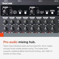 Om het opnemen nog eenvoudiger te maken heeft Tascam een stereo set condensatormicrofoons ingebouwd. Ideaal om vlug even een demo in te spelen. Er zijn twee ingangskanalen aanwezig, elk voorzien van een XLR- en een jack-aansluiting. Hiermee is het mogelijk microfoons, keyboards en drumcomputers aan te sluiten. Eenmaal opgenomen kunt tot 8 kanalen mixen en editten. De jack-ingangen zijn ook te gebruiken als gitaar-ingang middels een level schakelaar. Zoals u