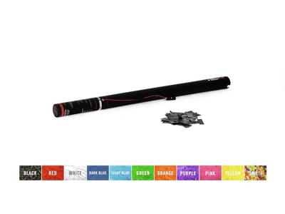 Electric confetti cannonAmmunition for E-Shot, WI-Shot and Confetti GunMaximum load of paper confetti insideFun for young and oldOutput distance: Approx. 12 mComplies with SP 371(1)Available in various colors and sizesBAM testedFor application areas such as: Clubs/dancing school; stagePower connection:Fixed power supply cord with special plugOutput distance:Approx. 12 mStandard:SP 371(1),Type of Confetti:ConfettiActivation:ElectricColor:BlackDimensions:Length: 80 cmWeight:580 g