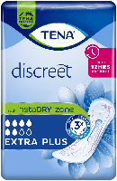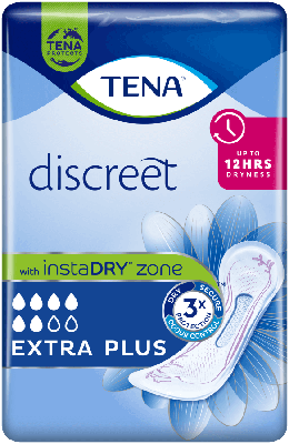 TENA Discreet Extra Plus TENA Discreet Extra Plus zijdezachte verbanden bieden veel zekerheid dankzij de InstaDRY™ zone. Hierdoor wordt de urine snel opgenomen in een sterk absorberende kern. De huid blijft hierdoor droog en geurtjes worden geneutraliseerd. • Drievoudige bescherming voor een droog, zacht gevoel en bescherming tegen doorlekken. • Discreet te dragen in uw ondergoed • Comfortabele pasvorm door wendbaarheid van het verband • TENA Discreet Extra Plus 8 stuks is een medisch hulpmiddel In handige duoverpakking.