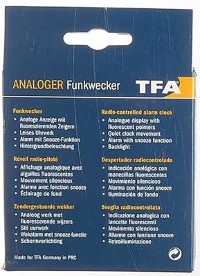 TFA Dostmann 60.1517.01 Wekker Zendergestuurd Zwart Alarmtijden 1 Fluorescerende Wijzers