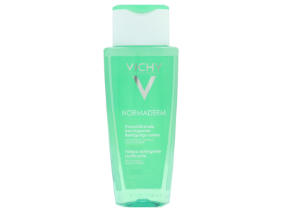 Vichy Normaderm Zuiverende Reinigingslotion (200ml) is een verfrissende water-formule die speciaal is ontwikkeld voor een huid met grove poriën. Deze hypoallergene lotion met subtiele bloemengeur bevat exfoliërend Salicylzuur en Glycolzuur voor een optimale reiniging. De