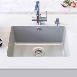 Gootsteen enkele bak graniet grijsOnze granieten keukengootsteen is een tijdloze aanvulling op je keukeninrichting. Hij heeft een enkele, extra diepe bak en een slank ontwerp. Het hoogwaardige graniet maakt de gootsteen hittebestendig, kras- en slagvast en gemakkelijk schoon te maken. Een zeefje is ook inbegrepen voor eenvoudige verwijdering van vuil. De gootsteen is eenvoudig te monteren.182,95