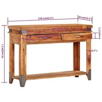 Voeg een vleugje elegantie toe aan je interieur met deze klassieke wandtafel! Hij vormt een geweldige aanvulling op je interieur. Massief acaciahout: massief acaciahout is een prachtig, natuurlijk materiaal. Acaciahout is een tropisch hardhout dat stevig en duurzaam is.Voldoende opbergruimte: de tafel beschikt over 2 lades en biedt voldoende ruimte om kleinere spulletjes geordend en binnen handbereik te houden.Display functie: deze gangtafel heeft een stevig tafelblad, waarop je decoraties, zoals fruitschalen of vazen, kunt plaatsen. Waarschuwing:dit product moet met de bijgeleverde materialen aan de wand gemonteerd worden, om eventueel kantelen/omvallen te voorkomen. Opmerking:Bij elk product wordt een montagehandleiding in de doos geleverd, voor eenvoudige montage.De kleuren kunnen per stuk variëren, waardoor elk meubelstuk uniek is en net iets anders is dan de rest. Levering is willekeurig.