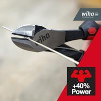 Bijzondere kenmerken * Maakt het werk makkelijker: Met tot 40% hogere knipkracht door een geoptimaliseerde hefboomwerking * Ontziet uw gezondheid: De speciale scharnierconstructie DynamicJoint® verlaagt de krachtsinspanning bij het knippen.Ontlastend werken bij langdurig gebruik dankzij openingsveer * Het voortdurend op maat knippen van kabels en draad vereist een hoge krachtsinspanning en vormt een zware belasting van de pols. De Wiha krachtzijkniptang met tweecomponentenhandgreep maakt krachtbesparend knippen mogelijk onder zware omstandigheden. Het tangscharnier met DynamicJoint® zorgt voor een optimale overdracht van de handkracht naar de snijvlakken en een tot 40% hogere knipkracht. De activeerbare openingsveer maakt met name bij voortdurend gebruik moeiteloos werken mogelijk. De krachtige tang met halfronde kopvorm garandeert bovendien een nette knip. Verder zorgen de ergonomisch gevormde tanghandgrepen voor comfortabel werken zonder moe te worden. De krachtzijkniptang